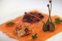 Carpaccio od lososa s hrskavim vlascem i phyllo pahuljicama